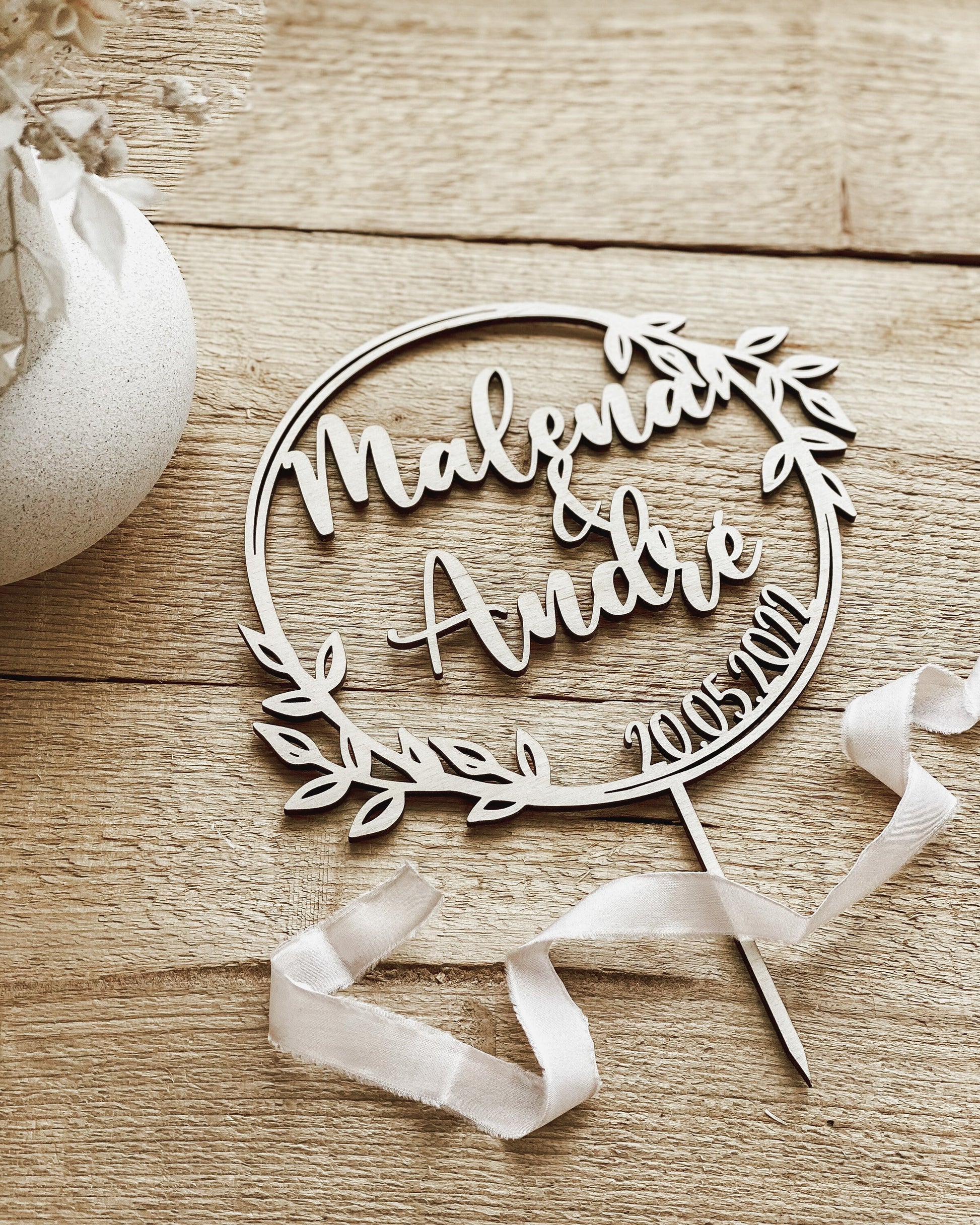 Dieser schöne personalisierte Caketopper verleiht eurem Kuchen oder eurer Torte das besondere Etwas.