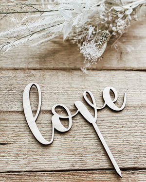 Liebe geht bekanntlich durch den Magen. Warum dann nicht auch mit unserem schönen Caketopper mit dem Schriftzug "love"?! Lasst Euch nicht nur geschmacklich, sondern auch optisch euren Kuchen oder eure Torte an eurem Hochzeitstag oder Jahrestag schmecken.