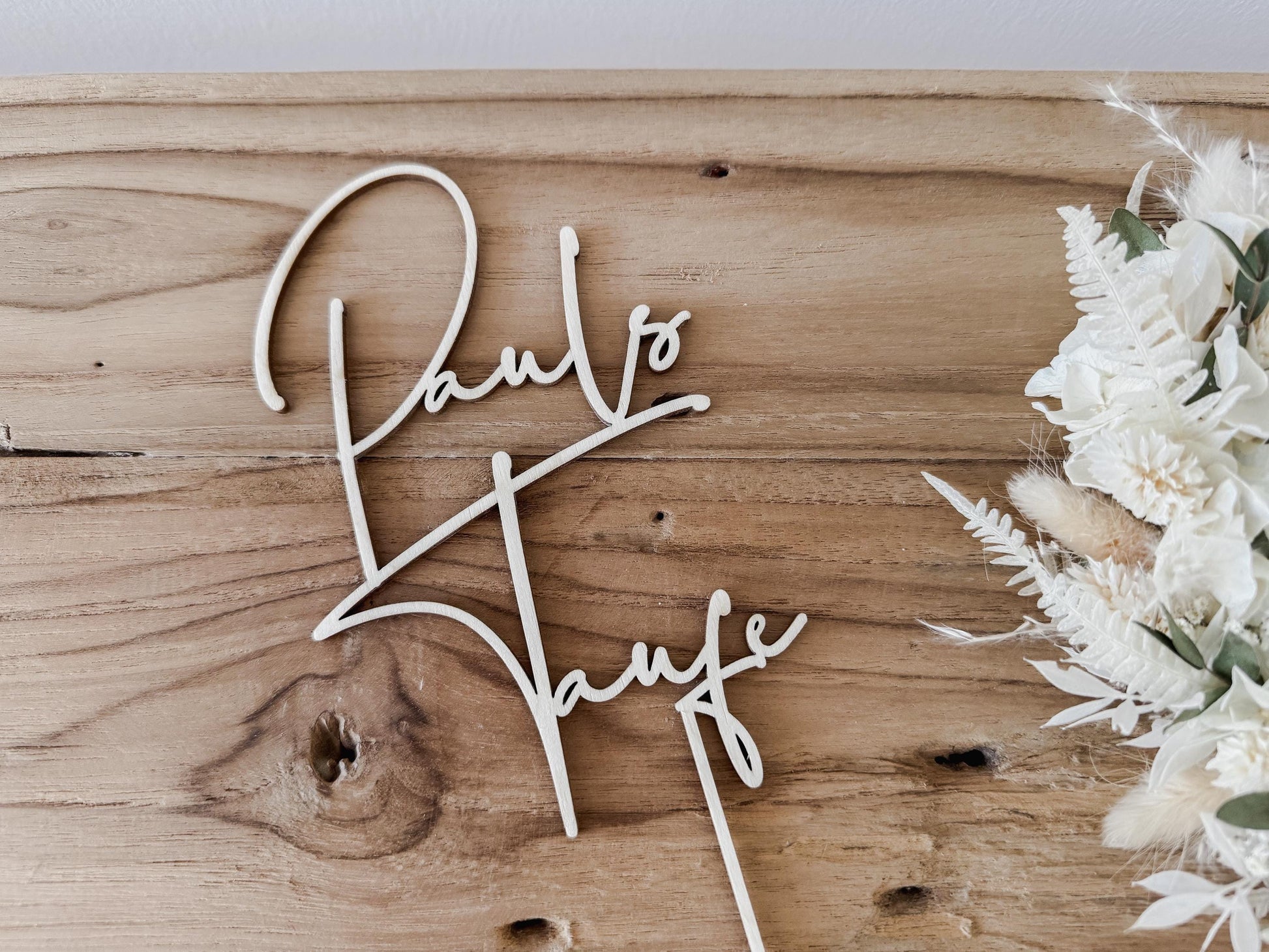 Verleihe deiner Tauftorte eine persönliche Note mit unserem liebevoll gestalteten Caketopper zur Taufe. Der elegante Schriftzug wird individuell mit dem Namen des Täuflings gefertigt und macht deine Torte zu einem ganz besonderen Highlight.
