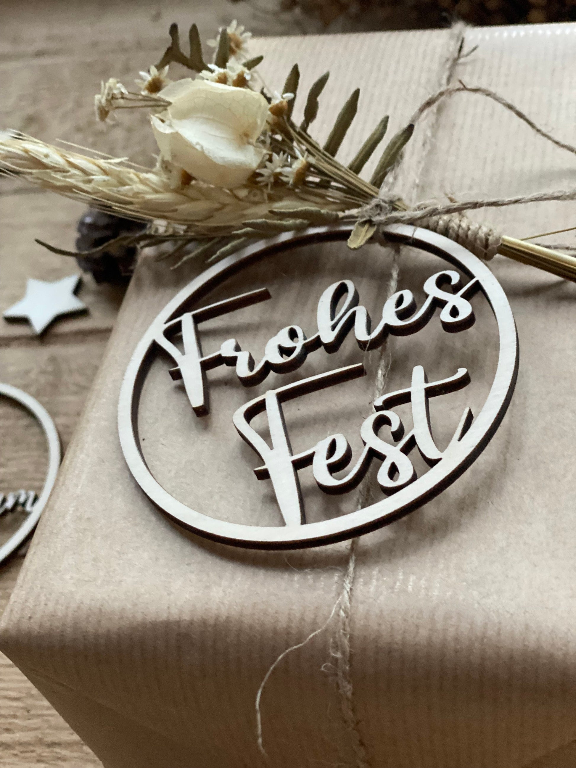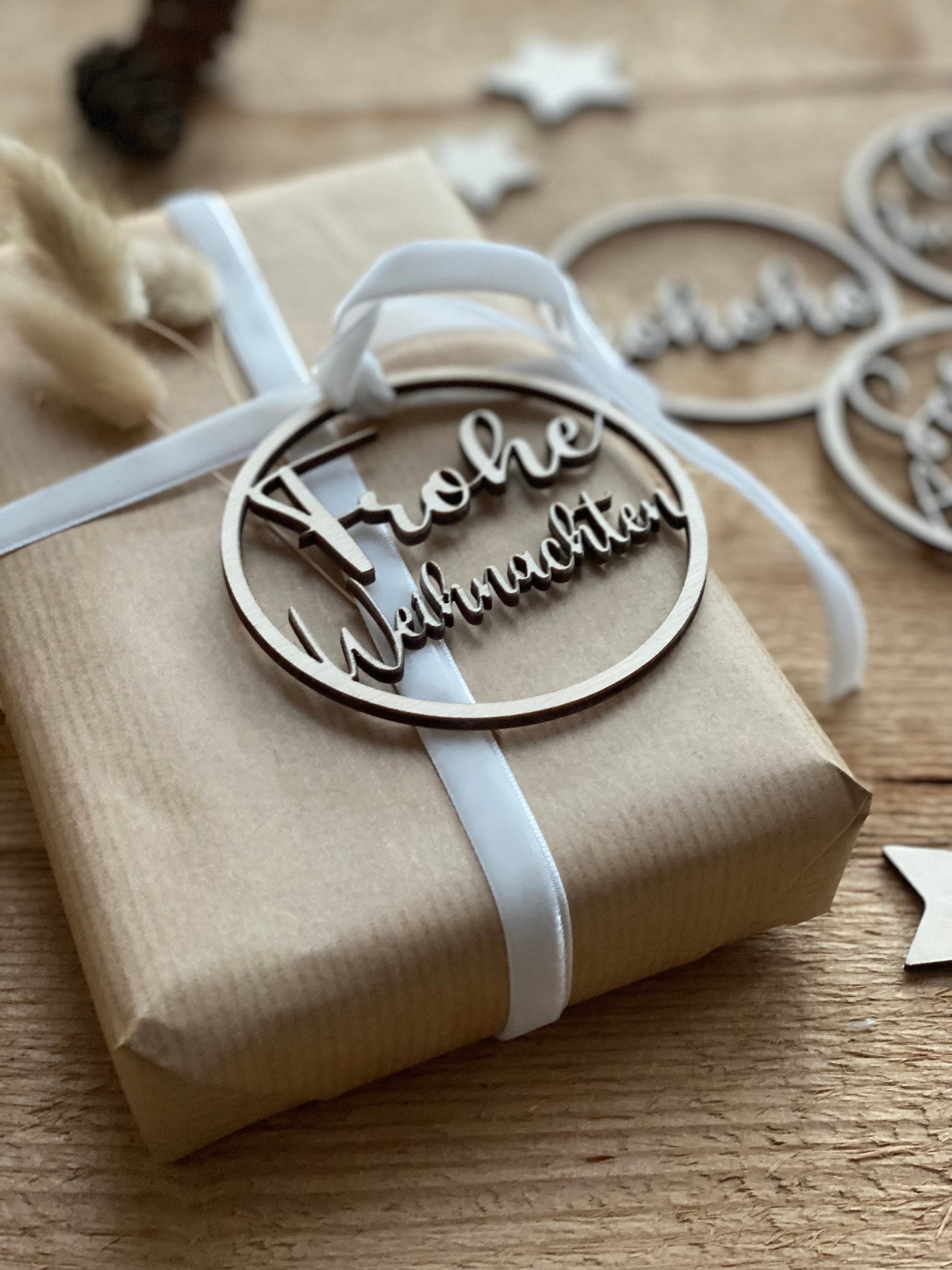 Diese Geschenkanhänger aus Holz sind ein besonderer Blickfang an jedem Weihnachtsbaum oder verschönern euer Geschenk zu Weihnachten für euren Lieblingsmenschen.