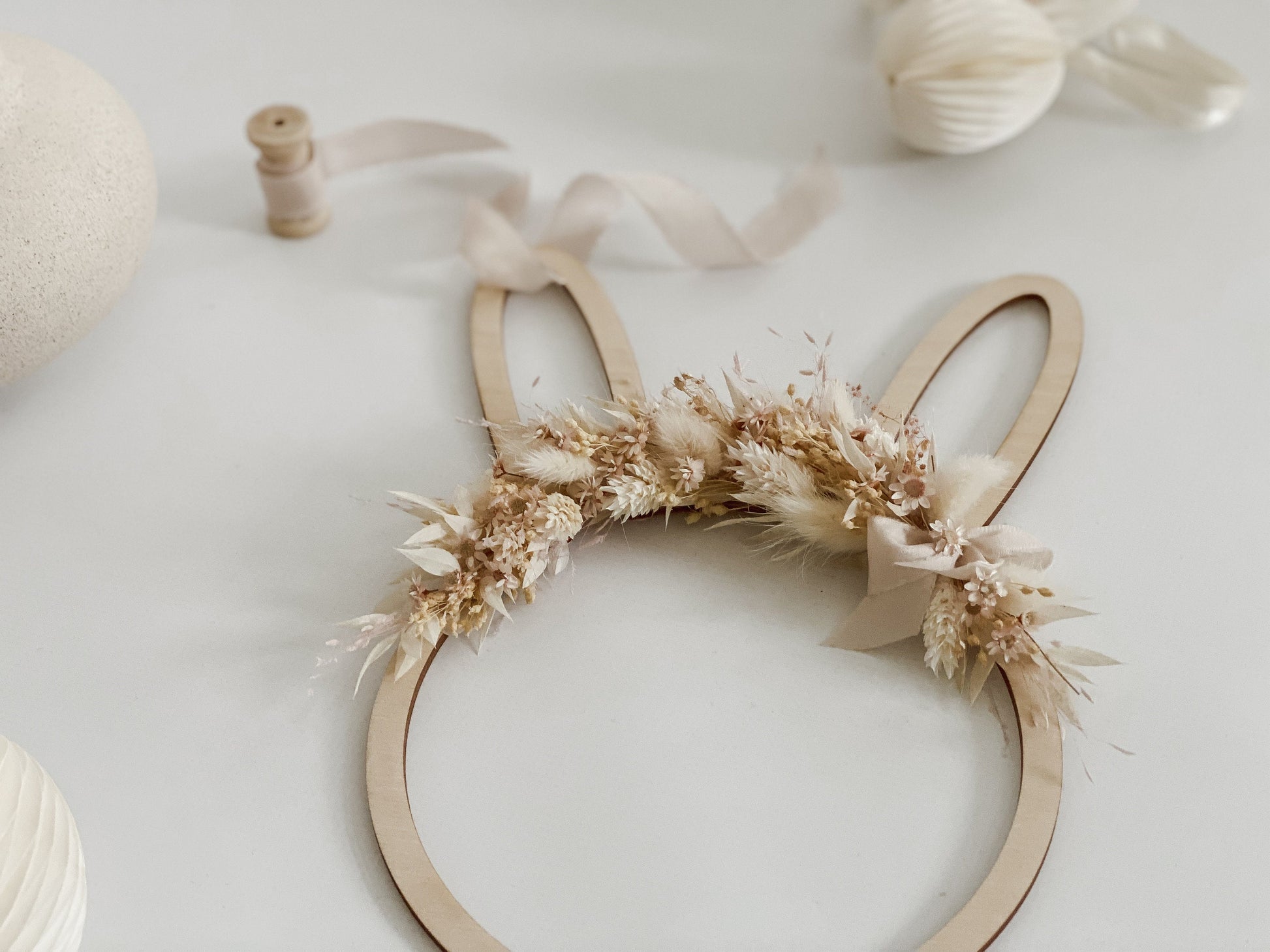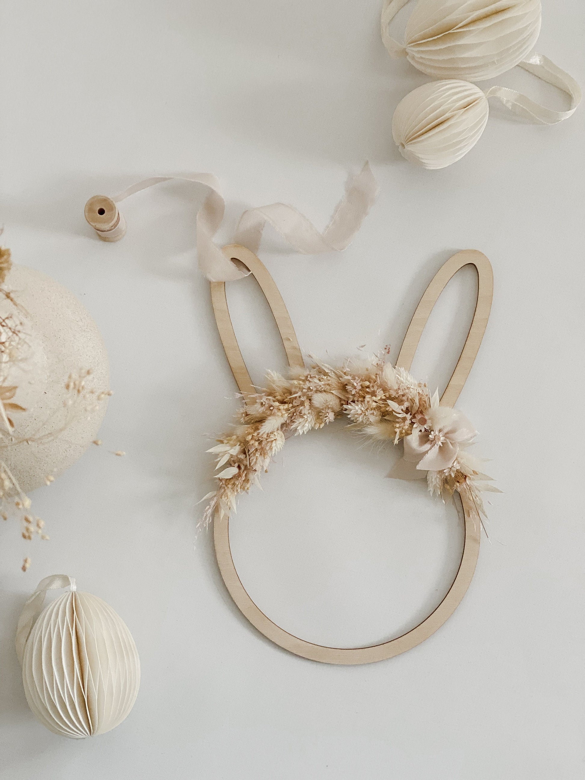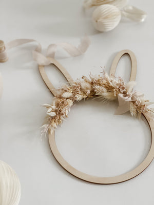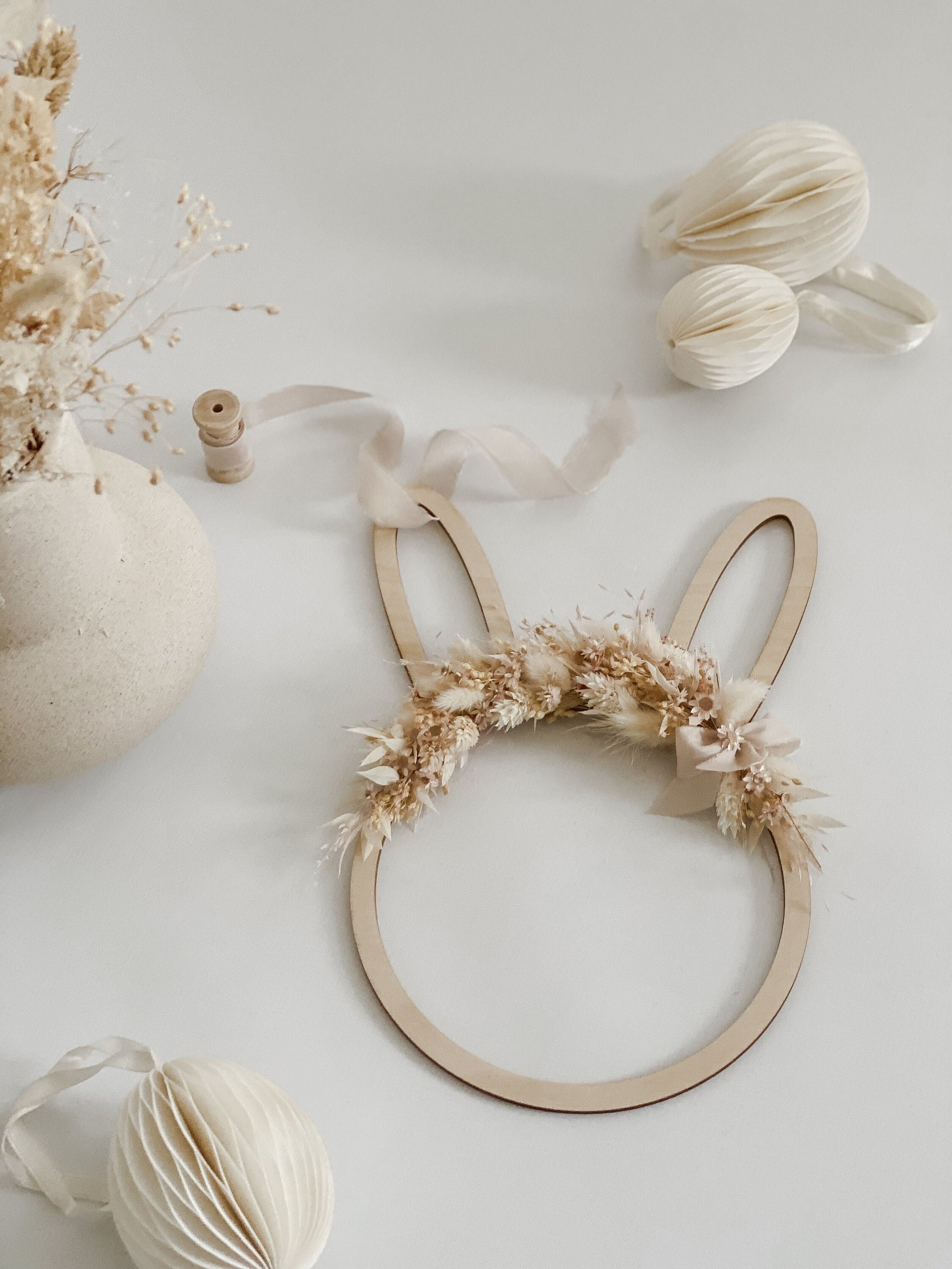 Im Lieferumfang enthalten: ♦ 1 Holzkranz Hase – wahlweise mit oder ohne Trockenblumen