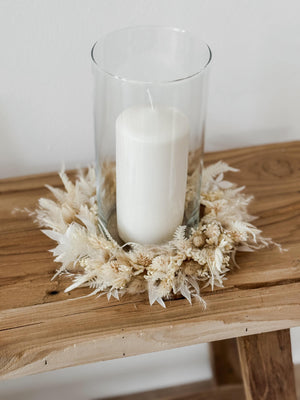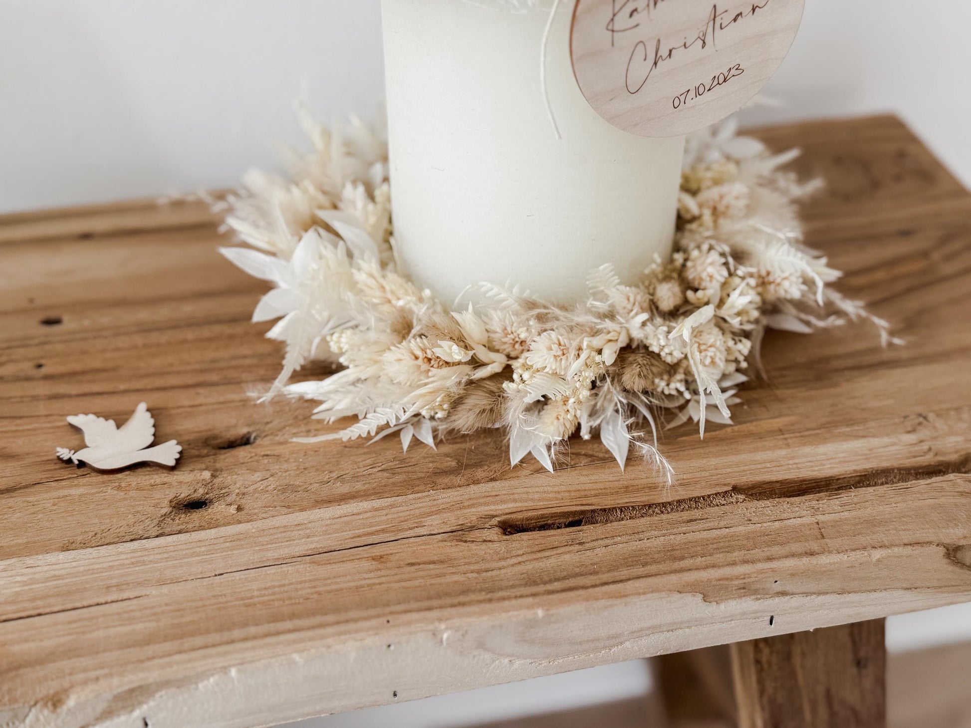 Kerzenkranz aus Trockenblumen Creme-braun I Blumenkranz für Tauf-, Kommunions- oder Hochzeitskerze I Trockenblumenkranz für Windlicht