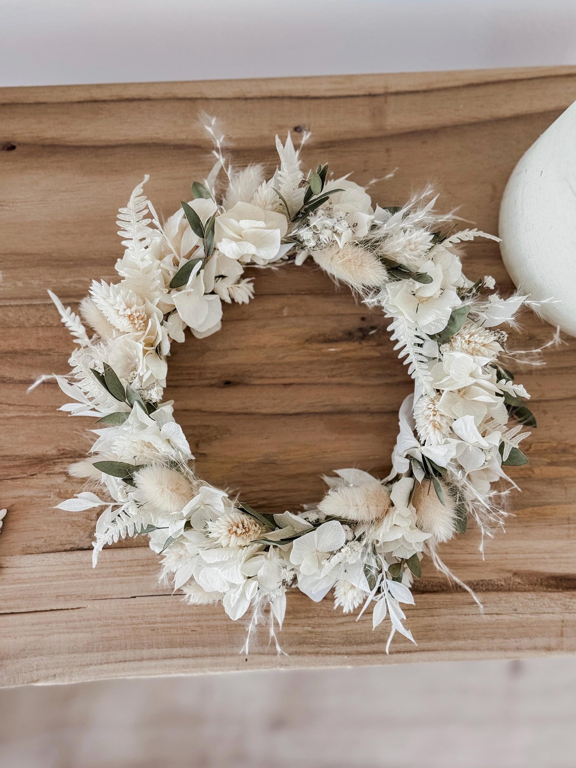 Im Lieferumfang enthalten: ♦ 1 Trockenblumenkranz mit dem Durchmesser von 12cm, komplett gewickelt auf einem Metallring