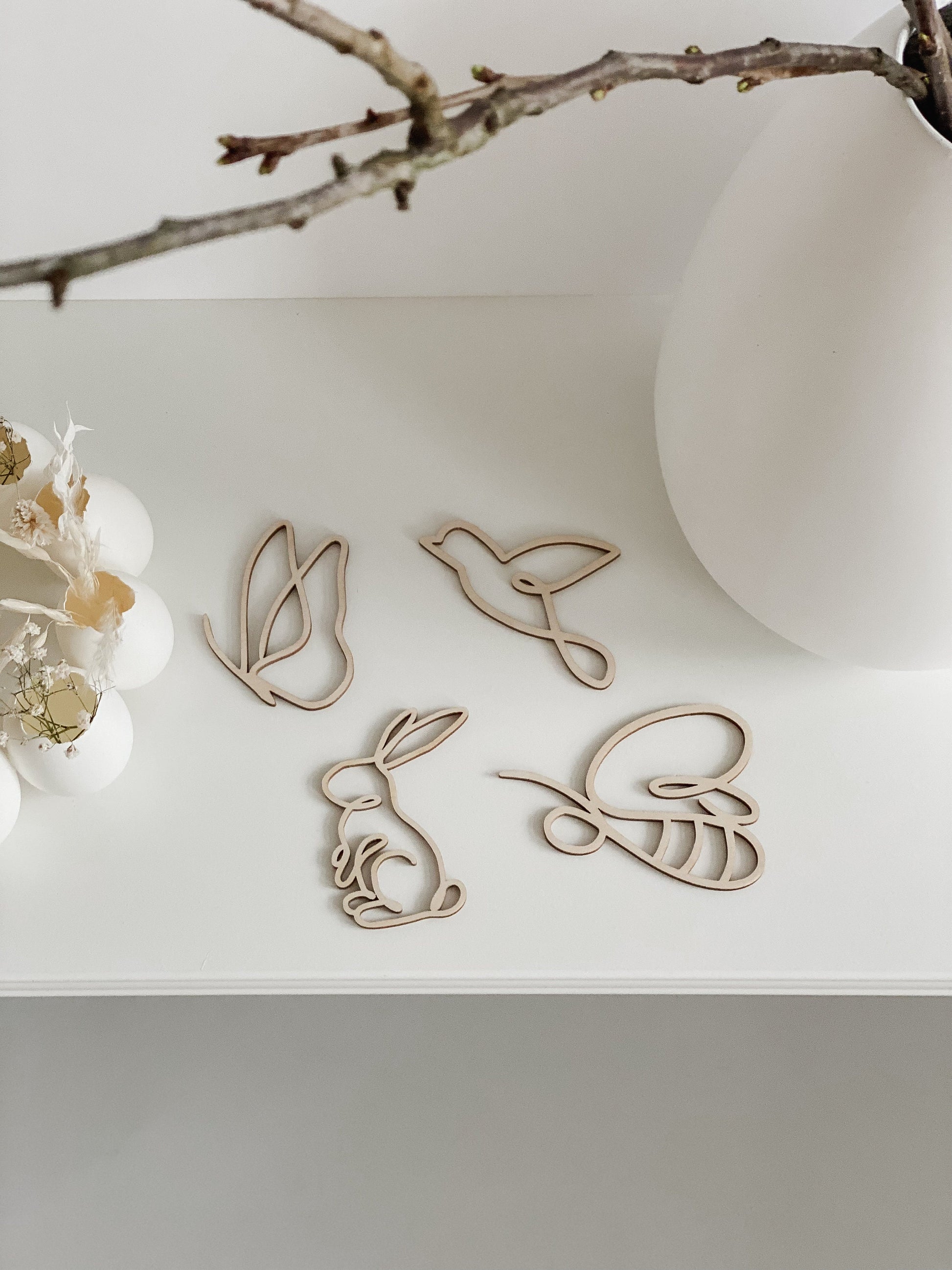 Dann wirst du diese Line Art Osteranhänger aus Holz lieben! Du kannst sie an deinen Osterstrauß / Frühlingsstrauß oder die Ostergeschenke für deine Liebsten anhängen, oder anderswo als Osterdekoration verwenden. Sie werden auf jeden Fall frischen Wind in deine Frühlingsdeko bringen und ein Lächeln ins Gesicht der Beschenkten zaubern.