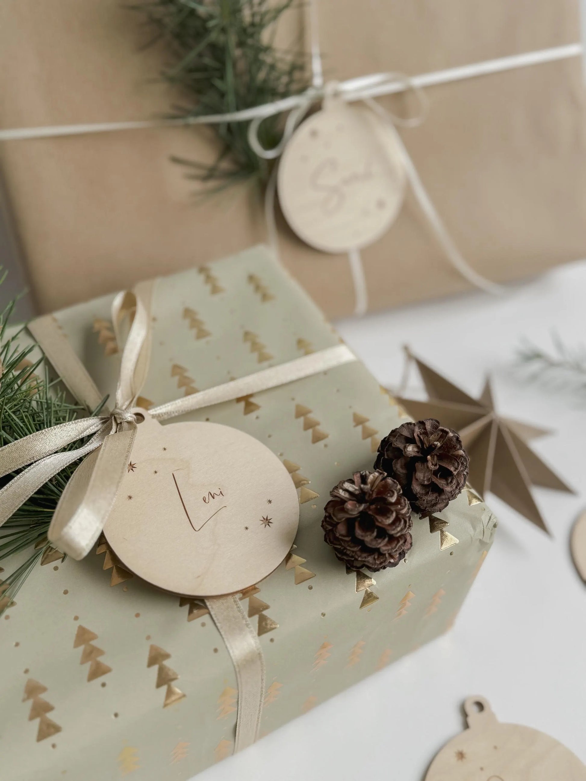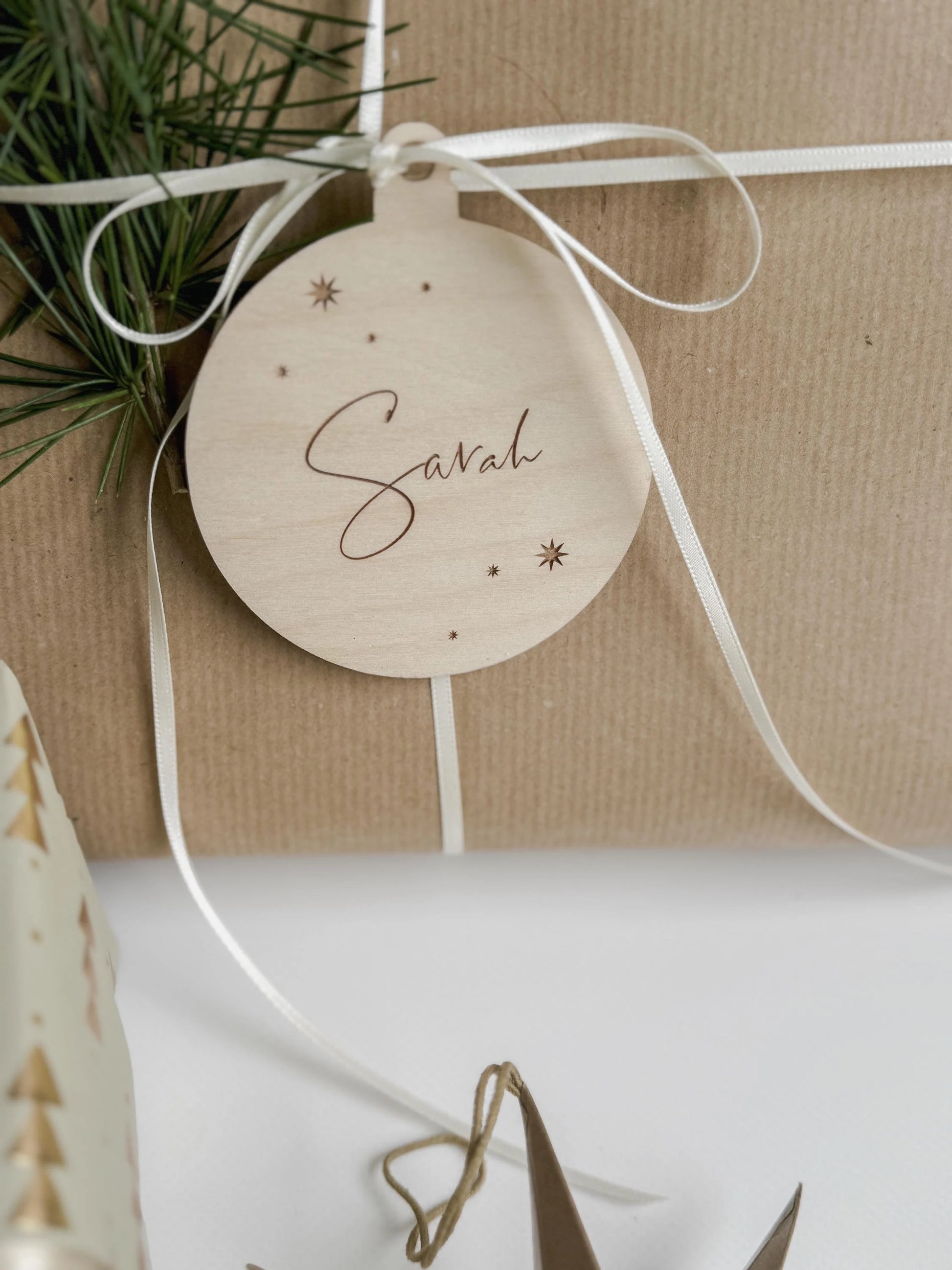 Diese personalisierten Christbaumkugeln aus Holz sind ein besonderer Blickfang an jedem Weihnachtsbaum oder verschönern euer Geschenk zu Weihnachten für euren Lieblingsmenschen.