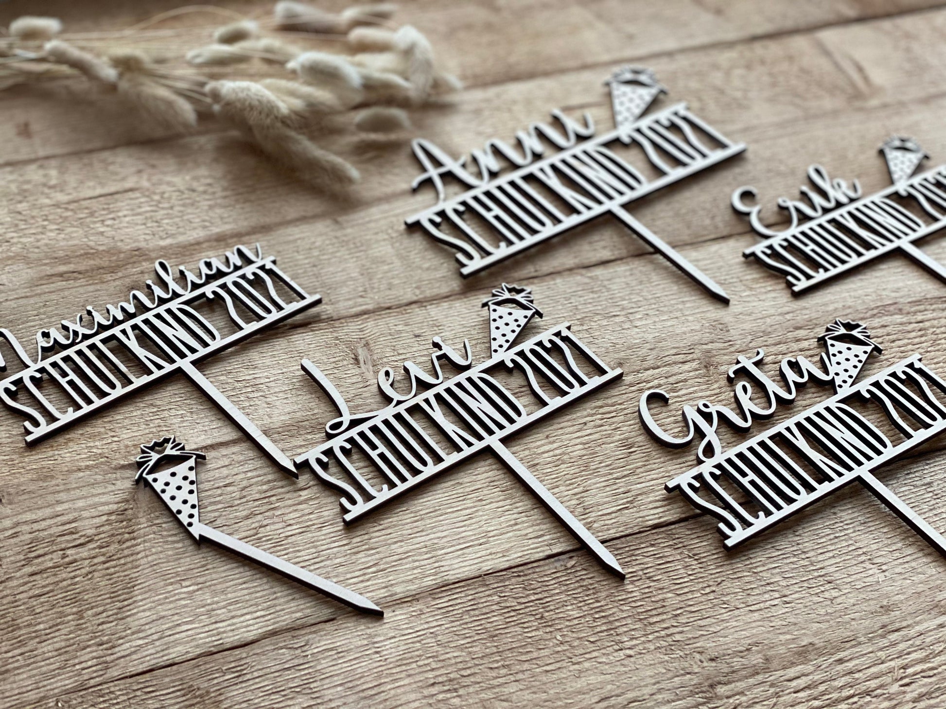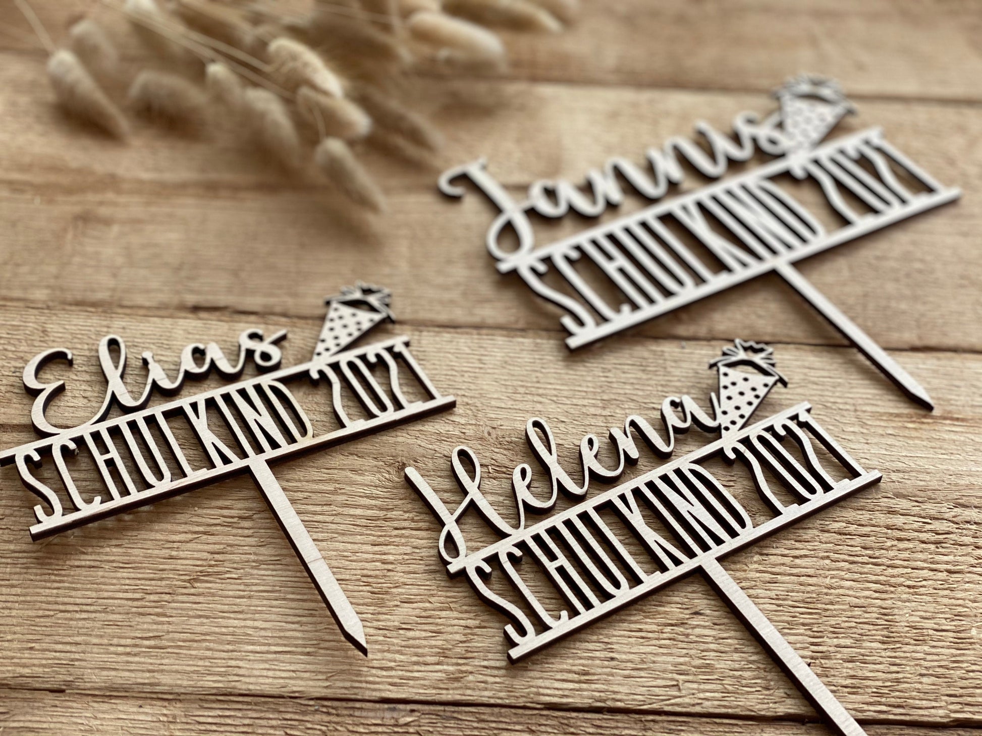 Der Beginn dieses neuen Lebensabschnittes muss doch gefeiert werden und mit diesem schönen personalisierten Caketopper wird eure Torte zur Einschulung ein echter Hingucker ♥