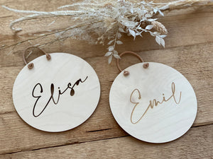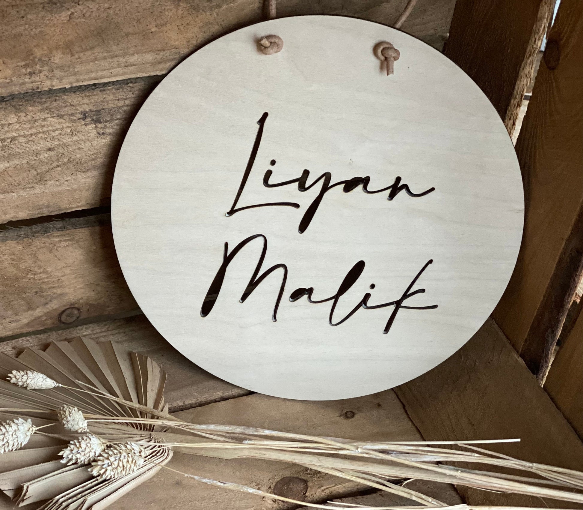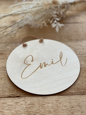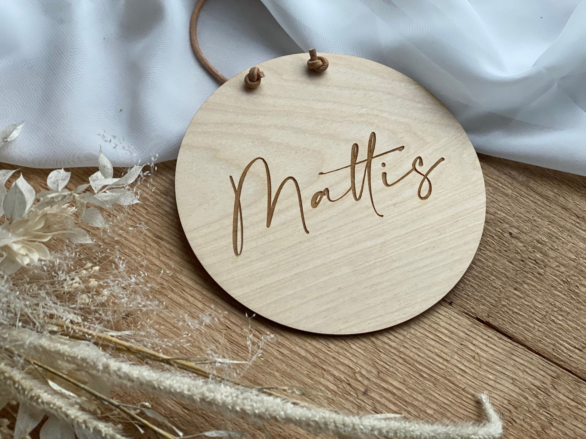 Unser rundes Holzschild, personalisiert mit dem Vornamen deines Kindes ist ein wundervolles Accessoire für dein Kinderzimmer. Ob über dem Babybett, an der Tür oder an der Wand – dieses Namensschild ist ein einzigartiger Blickfang und sorgt für eine warme, persönliche Atmosphäre im Kinderzimmer.