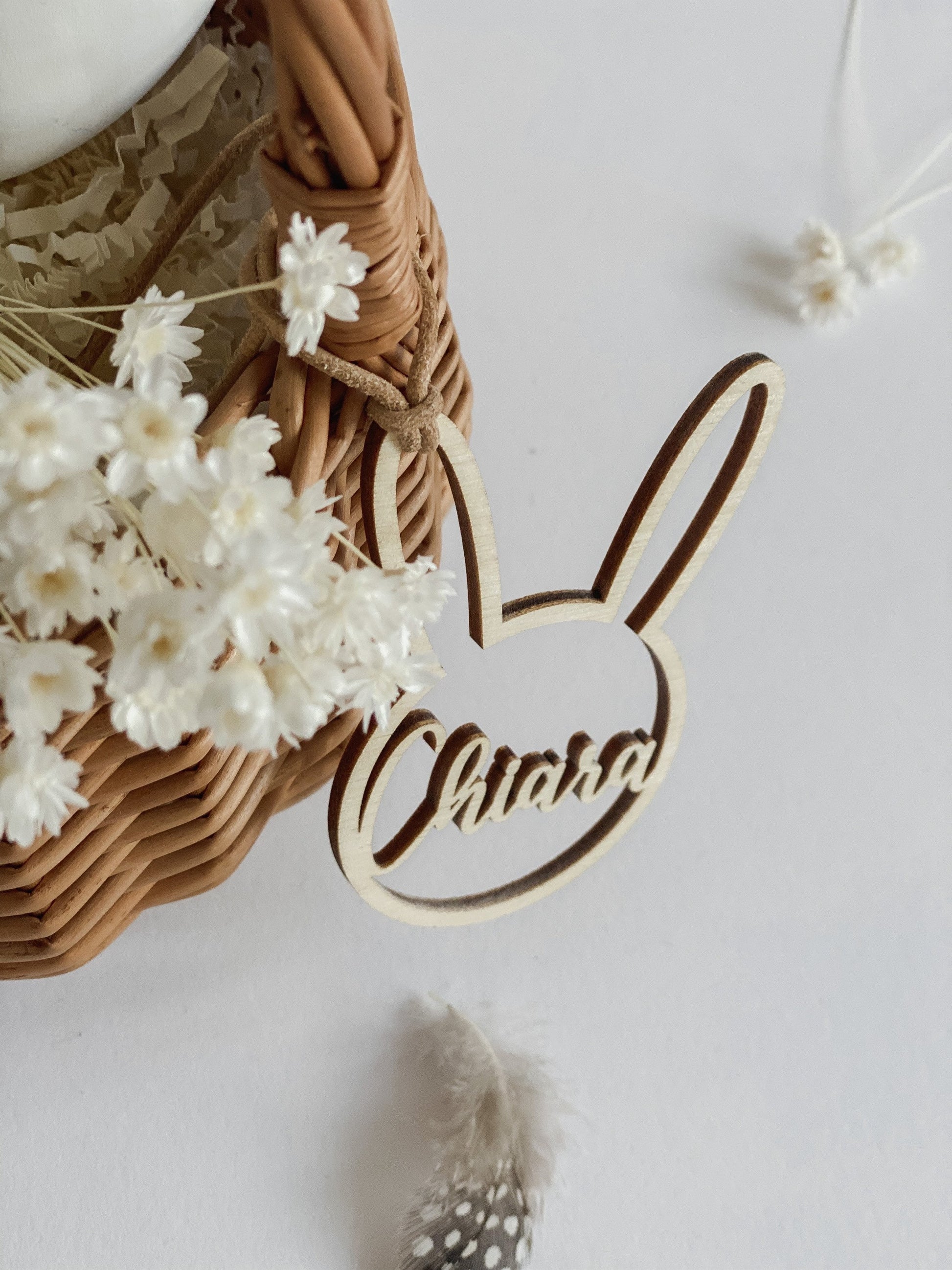 Personalisiertes Osterkörbchen | Osternest I Hasenanhänger für Osterkorb I Osterdeko I Holzanhänger ausgestanzt