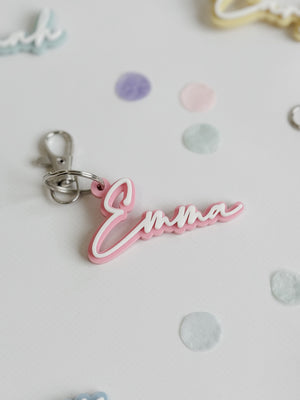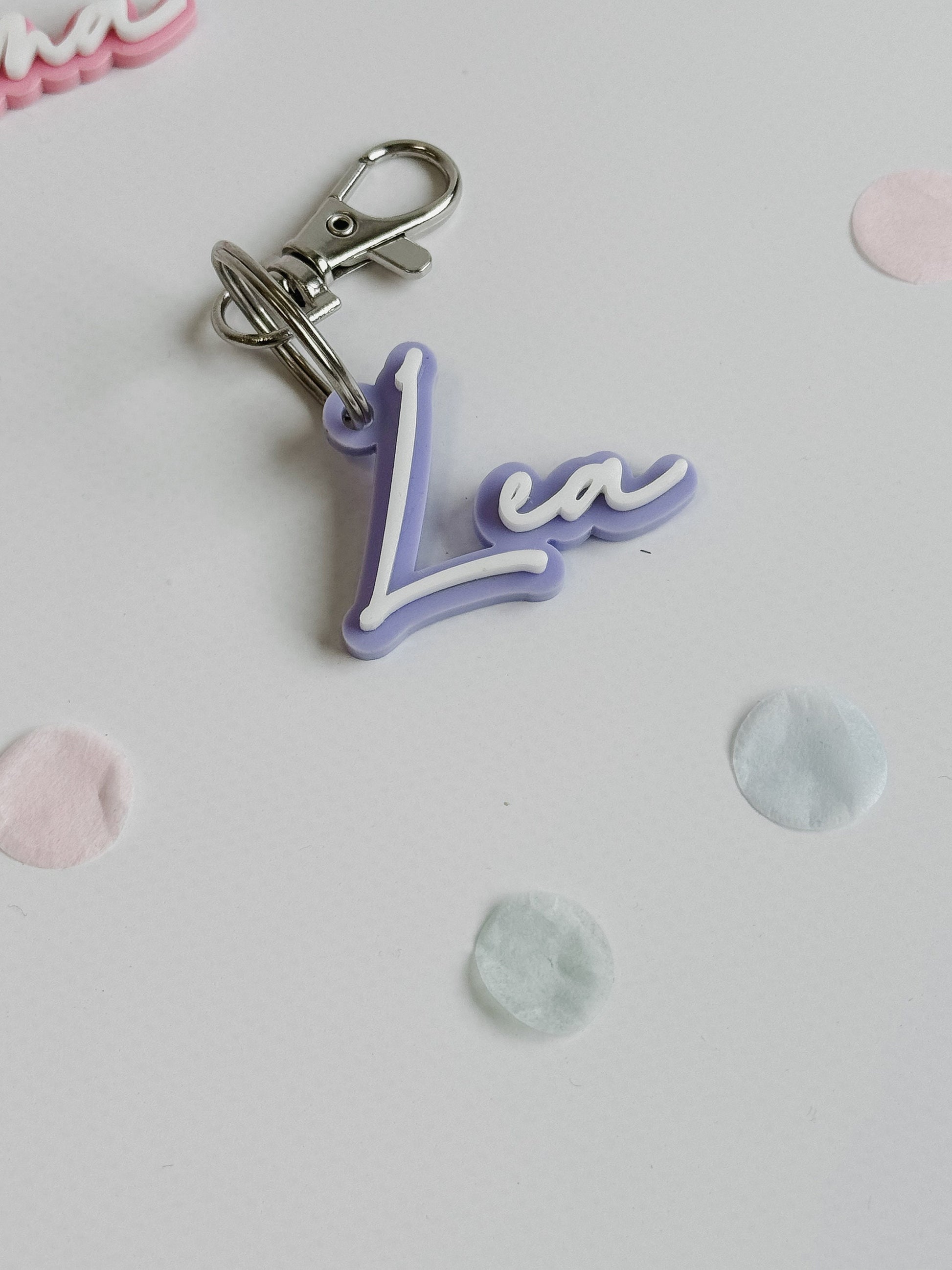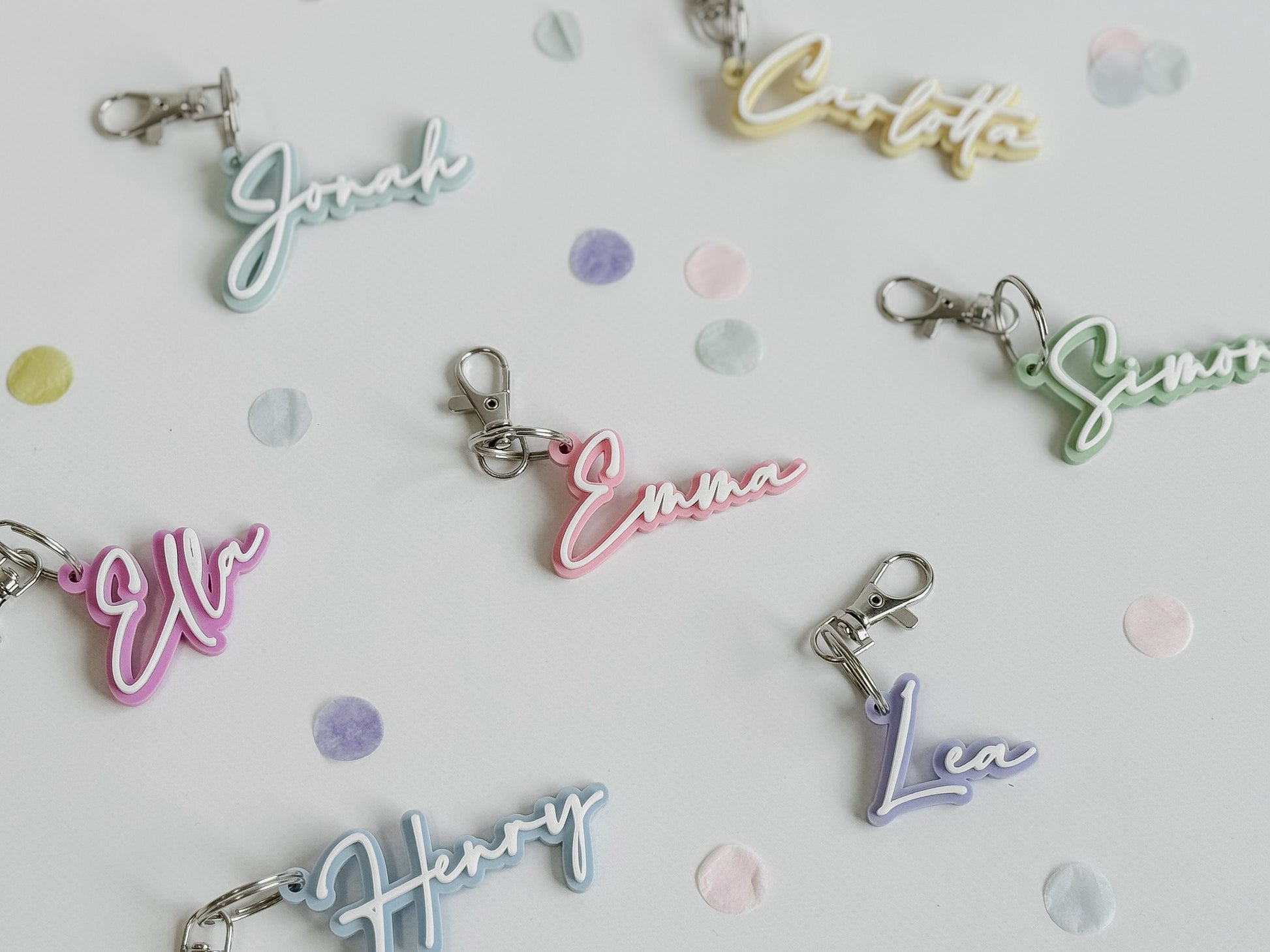 Dieser wunderschöne Namensanhänger aus Acryl ist ein echter Hingucker am Schlüsselbund und verleiht diesem durch seine Personalisierung das besondere Etwas. Auch an einem Rucksack, dem Schulranzen, dem Federmäppchen, einer Tasche oder einem Geschenk ist der Anhänger ein Eyecatcher.