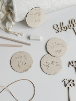 Der erste Schultag ist ein ganz besonderer Meilenstein im Leben deines Kindes. Mit unseren schönen Holzanhängern habt ihr ein tolles Accessoire, um eure Schultüte mit Namen und dem Einschulungsdatum zu personalisieren.