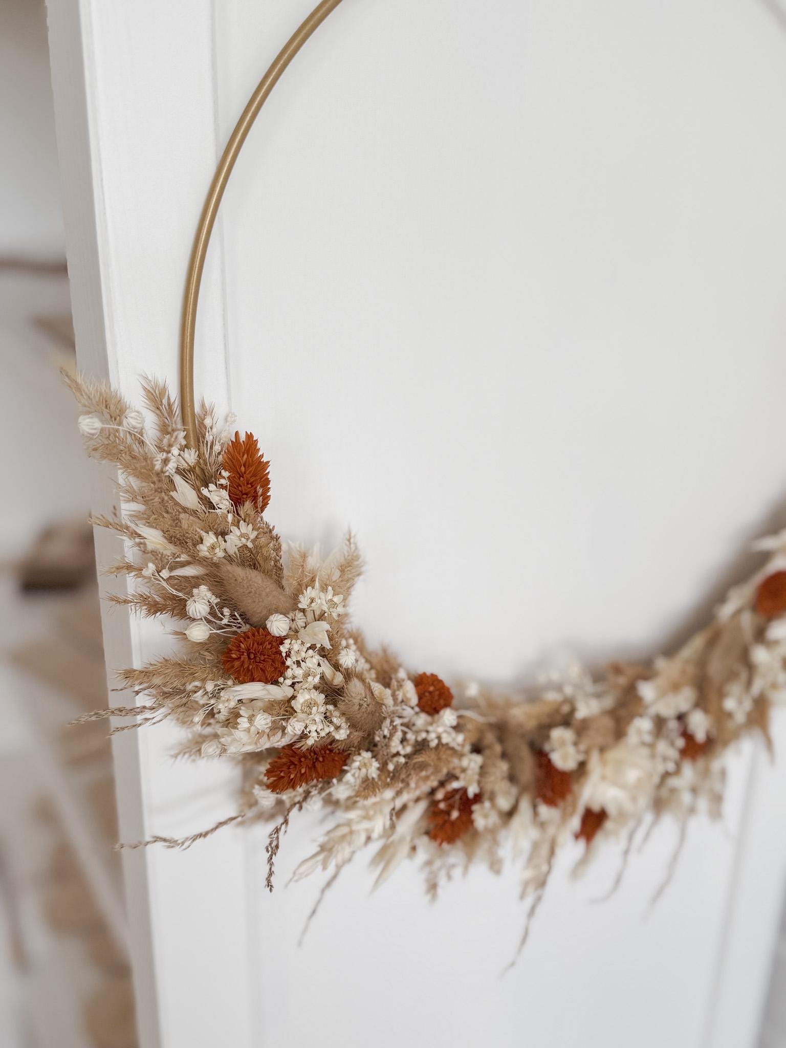 Trockenblumenkranz mit Holzschild I Türkranz Trockenblumen creme-braun-rost I Wandkranz I Blumenkranz