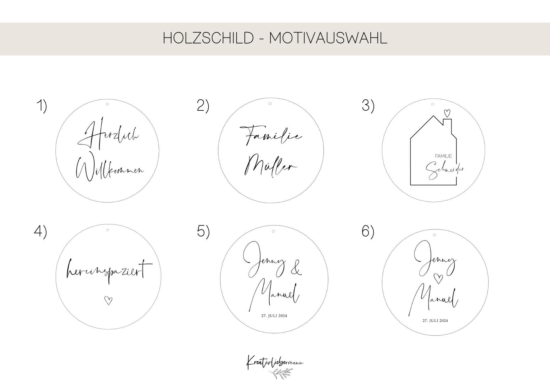 Optional könnt ihr ein Holzschild personalisieren lassen. Die Austauschscheibe kann zudem auch separat bestellt werden, somit könnt ihr den Trockenblumenkranz saisonbedingt anpassen.