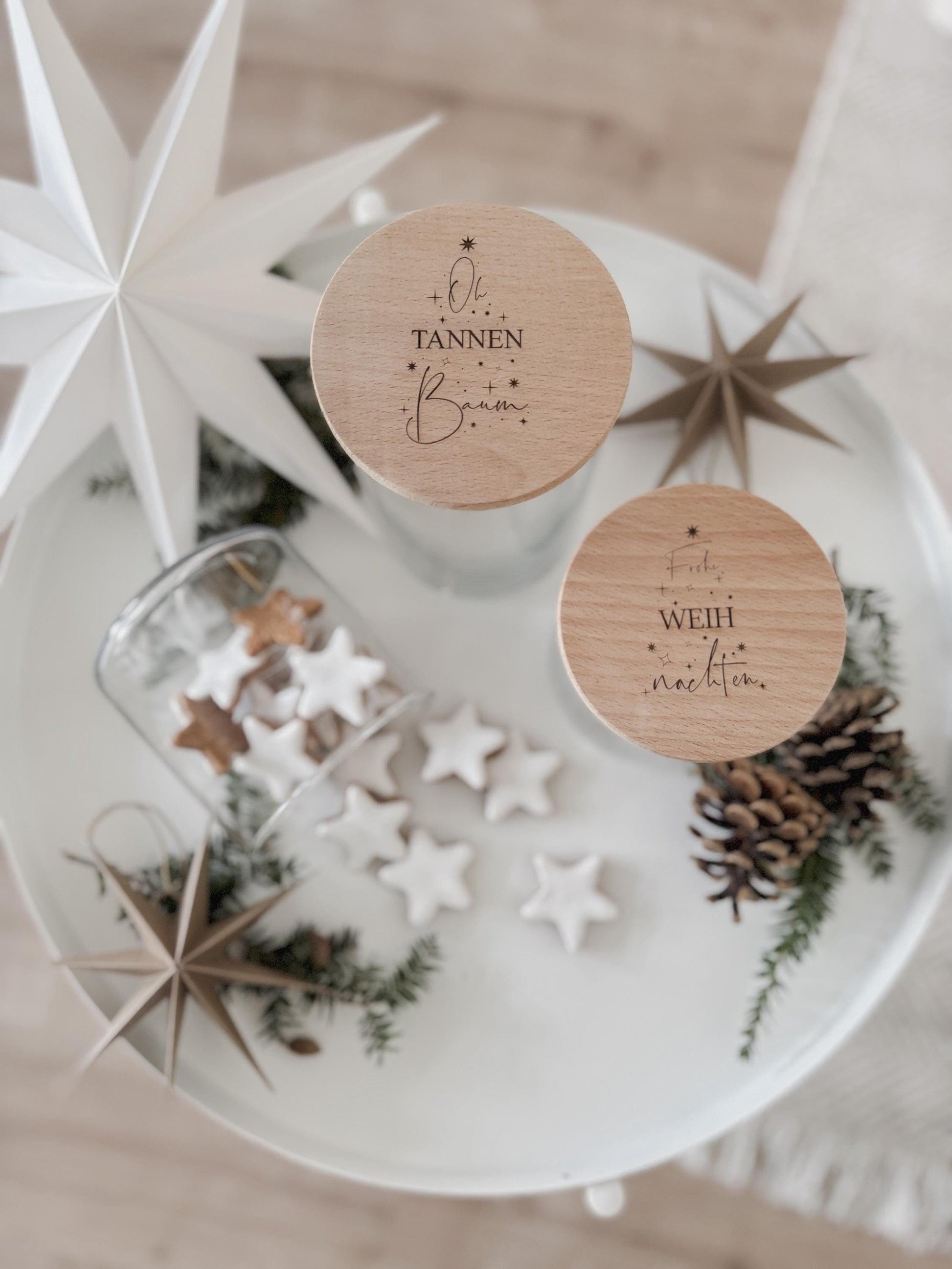 Im Lieferumfang enthalten: ♦ 1 Vorratsglas in der ausgewählten Größe mit graviertem Holzdeckel ♦ wahlweise dekoriert mit Spitzenband und einem kleinen Trockenblumenstrauß